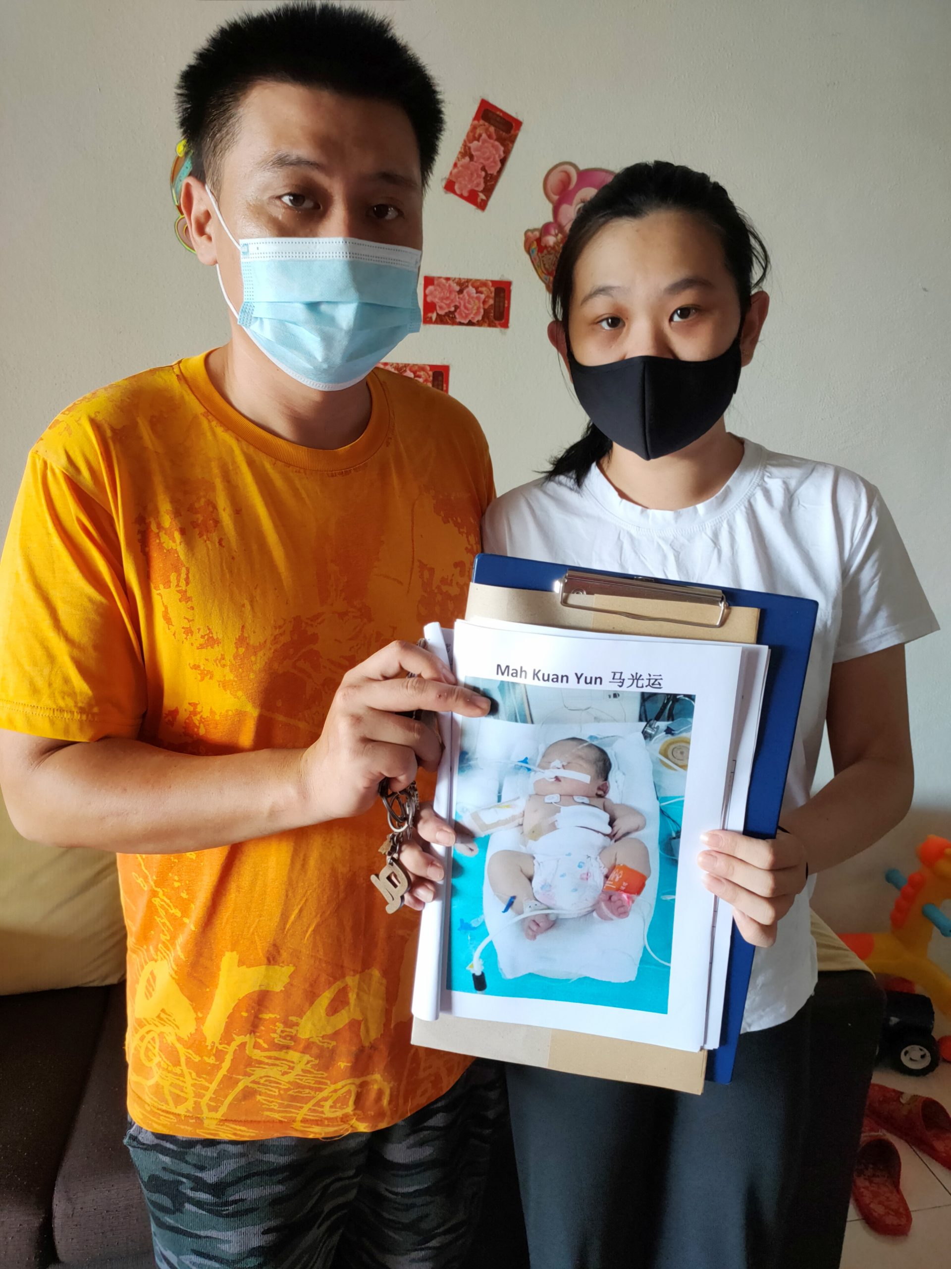 马光运本月8日在居林医院出世,母亲为陈玉美(29岁)、父亲为马成发(32岁),居住在吉打峇东色海。马成发夫妻还育有分别1和2岁的孩子,无法负担这笔医药费。