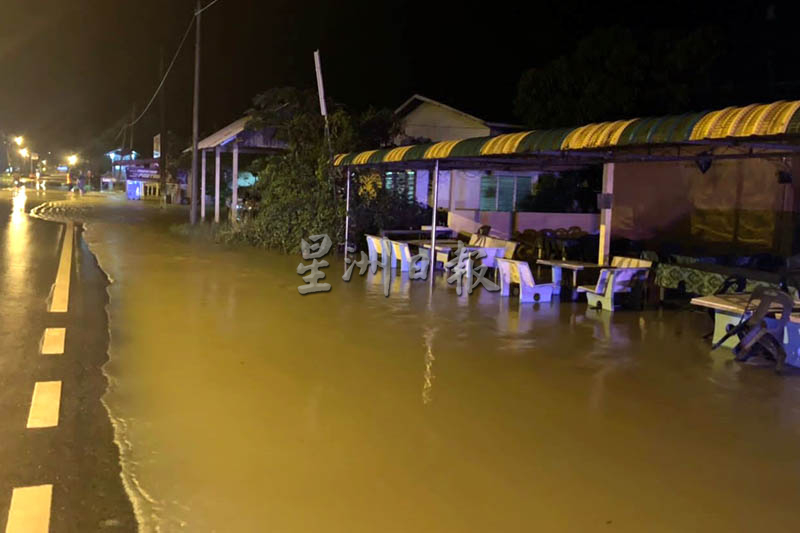 (双溪大年5日讯)大马气象局预测因受季候风影响,吉州多个沿海区域或将出现大涨潮,瓜拉姆拉警察昨晚出动到哥打瓜拉姆拉视察与监督,发现6家商店受涨潮影响,海水倒灌商店范围。