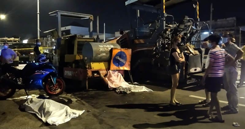(北海12日讯)2名好友外出庆祝友人生日后,共乘重型摩托车回家途中,撞上一辆正在进行铺路工程的沥青压路机,2人身受重伤当场去世。