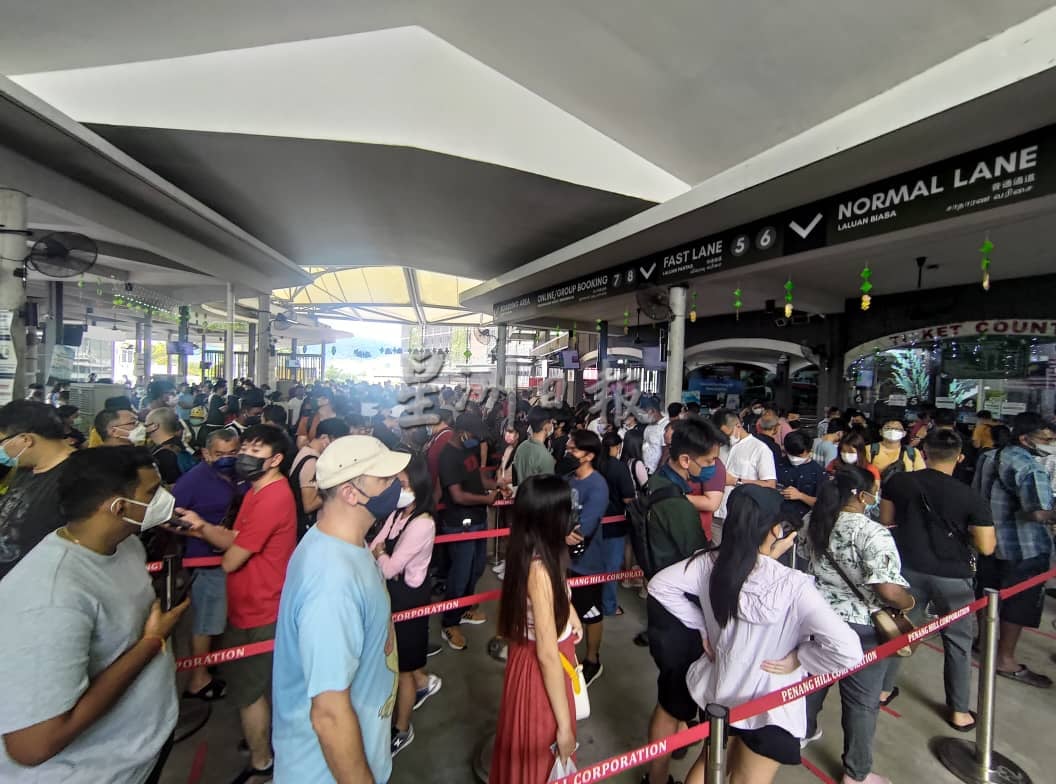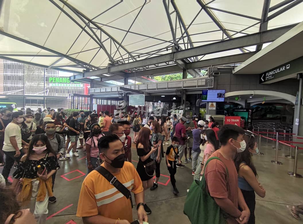 (槟城2日讯)今日开斋节首日,人山人海的槟城升旗山缆车站,却因拦车电子零件故障,今早短暂停止运行,所幸及时修复,缆车恢复通行。