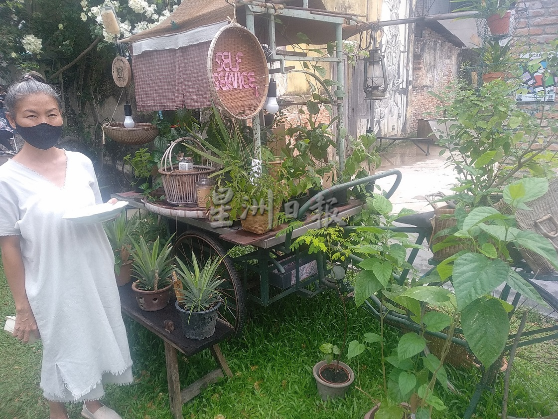 除外,在兴巴士里有一位研究很多草药和园艺的人士丽君,把她所栽种的植物放在小贩三轮车,挂上“自助”的牌子,植物都有价格票签,也有一个罐子贴上QR码,任何人看上任何植物,只要把票签拿下,再自行扫描付钱就可。
