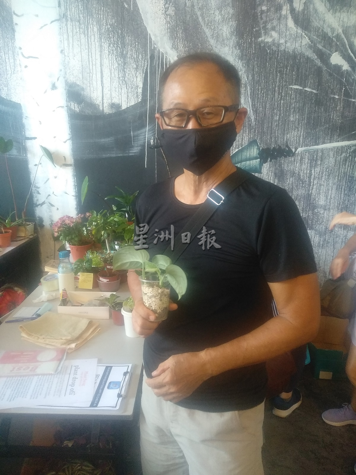 一位带来植物的会员谢成德说,在槟城有很多植物交换脸书群组,他就参加了数个,只要他贴文送植物,就会有人来到他位于浮罗山背的住家领取植物。