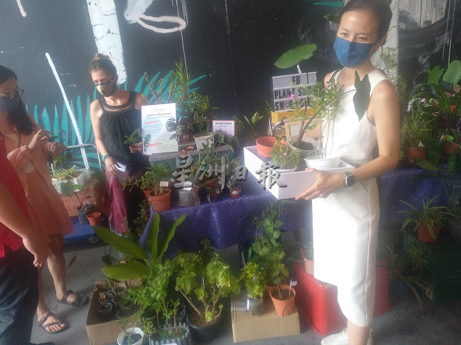 植物交换是让会员来交换同等数量、但大小无受限的植物,也让非会员乐捐至少5令吉领养任何植物,而当天摆摊的4位义工,皆带来自己的植物销售。