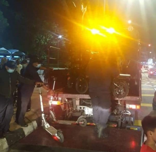 槟岛市政厅旧关仔角执法 充公非法业者电动滑板车