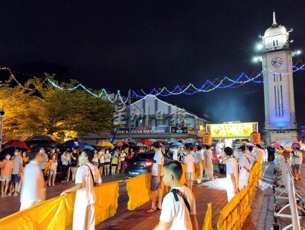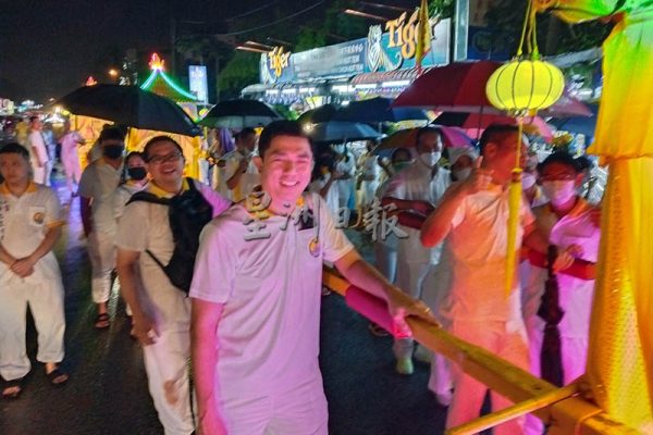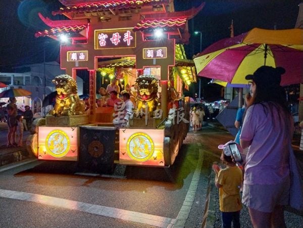 大年各大斗母宫理事会昨晚恭送九皇爷回銮时下大雨,但无阻虔诚的善信手持鲜花与清香恭送,民众也携老扶幼,在街上撑伞观看花车游行。