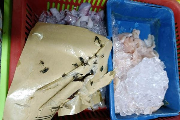 (北海21日讯)威北柏淡太子镇(Bandar Putra Bertam)一家东炎食肆因食材上有沾满苍蝇的粘蝇纸,存放食材容器不卫生及在厨房发现大量老鼠屎,被槟州卫生局勒令关闭。