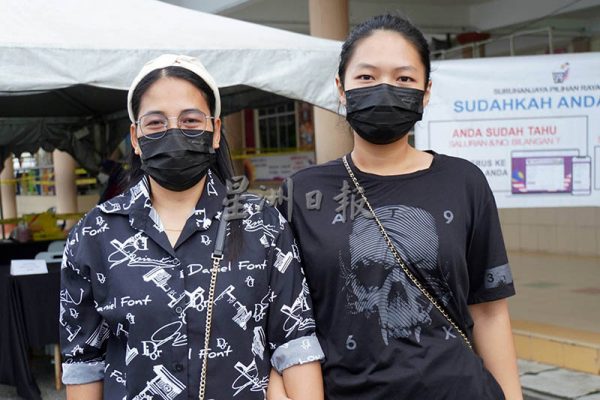 邢芷婷(25岁)与母亲阿乐卡伊蓊纱(45岁)自动成为选民,2人今早天还没亮就起身准备,早上7时40分一起到群益华小,成为该投票中心的首2名选民。