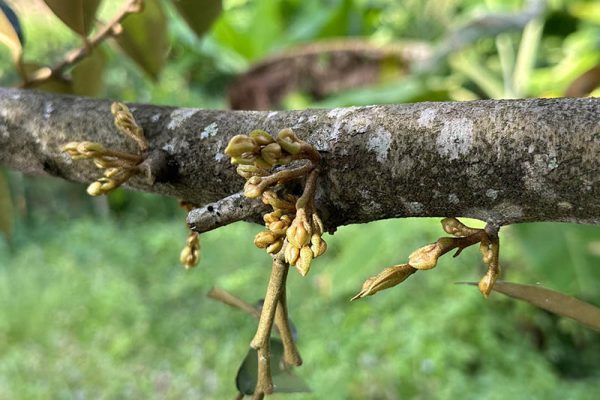 枝干陆续长出花蕊 槟城榴梿料5月中飘香