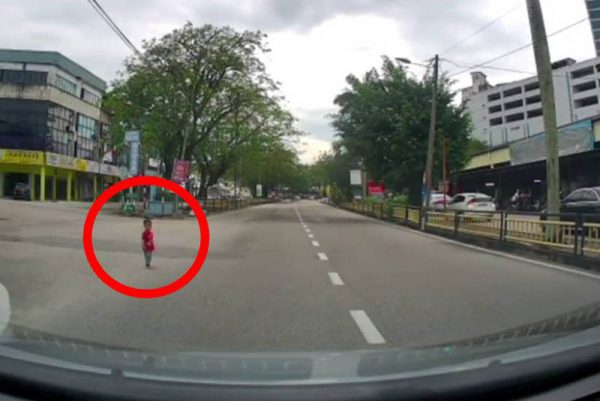 《当今槟城》(Penang Kini)脸书专页昨晚上载一则TikTok,显示行车记录器拍到一名幼童独自站在大山脚积古园繁忙的大路囗,让人心惊。