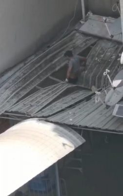 居民也不清楚该30多岁的男子,是从哪个层楼坠下,他掉落在组屋底楼的锌板屋顶上,屋顶也破了个裂缝。