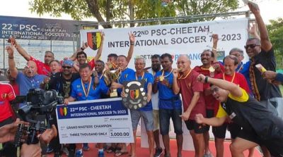 (槟城8日讯)槟城体育俱乐部主办CHEETAH国际7人足球赛,日前经过2天激烈比拚后圆满落幕。东道主槟城体育俱乐部以主场之力勇夺GRAND MASTER组(60岁以上)冠军。