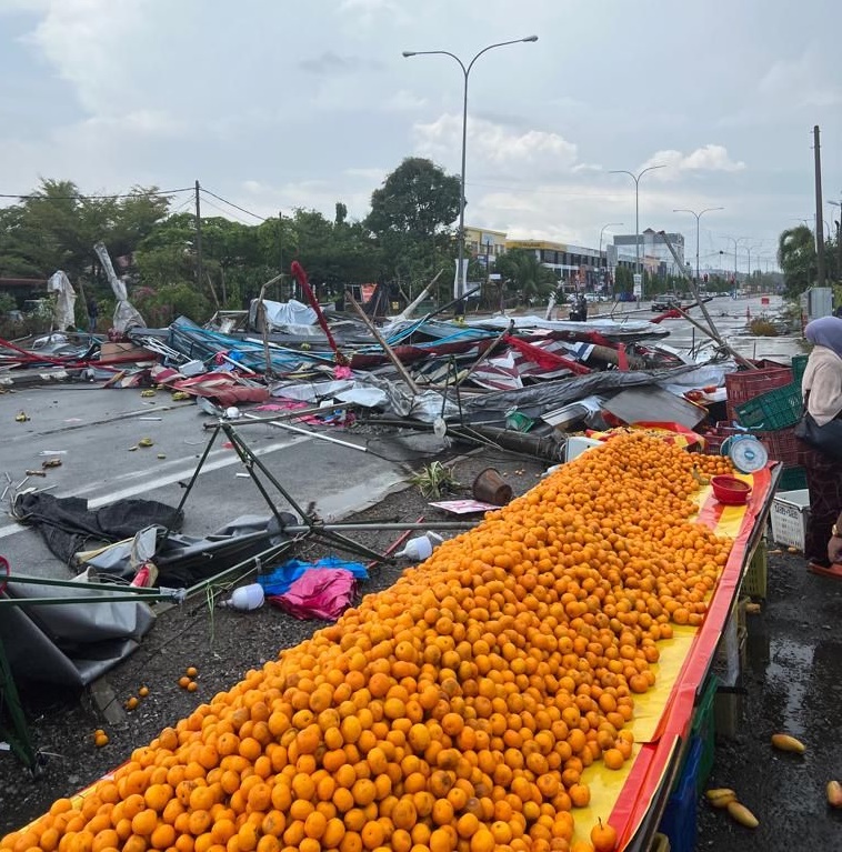 当地今午约3时许开始下起倾盆大雨,当时小贩们已开始准备在斋戒月市集摆摊,但一场暴风雨将所有档口吹毁,所幸没人受伤。