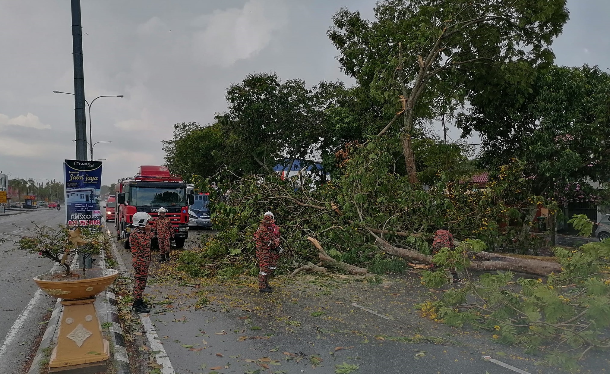 吉打州消拯局发言人发文告说,当局于下午3时30分接到投报,指靠近日得拉市镇有大树倒塌在路中央,阻碍交通。
