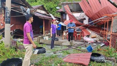(加央30日讯)玻璃市昨午遭遇暴风雨席卷,有近300户民宅遭遇风灾,初步估计损失近100万令吉。