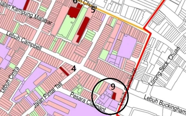 这一项更动,可在乔治市世遗特区蓝图(替代版)中见到,根据该蓝图,建筑物后部的相关结构,已从“第二类别古迹”改成“填充用地”。