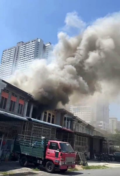 (槟城11日讯)乔治市加影路一间充当仓库的住家突然起火冒出浓烟,幸好没造成人命伤亡。