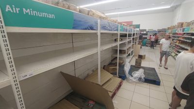 本报记者今晚7时15分前往Lotus’s Egate霸级市场了解情况,发现货架上大罐饮用水皆被一抢而空。