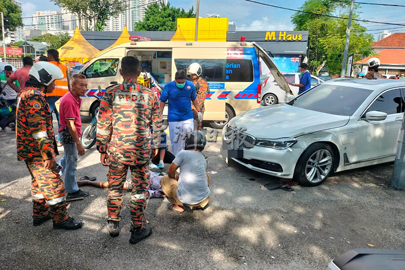 (槟城10日讯)摩托车与一辆宝马轿车发生碰撞后,骑士被卷入车底,现场一度传出骑士已经去世的说法,但宝马轿车司机澄清,骑士目前尚在医院接受治疗。