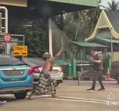 (威南31日讯)两名司机在收费站上演“马来武士”与“黄飞鸿”决斗戏码,幸好在第三者出现劝架后,双方“鸣鼓收兵”,没动真格。