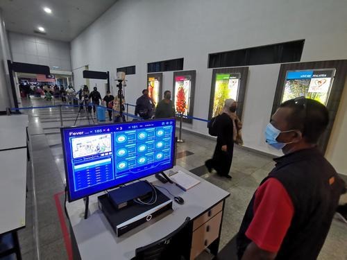 进入码头“Jetty Point”商场前,也有工作人员在检测仪器前站岗,以检测游客们的体温,一旦有疑点即会趋近以测温枪对著额头再测一次。