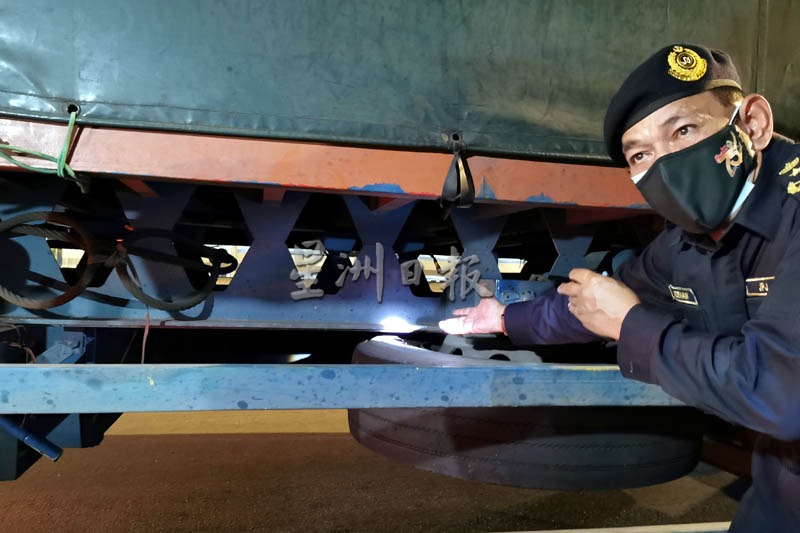 “这项行动动员45人,执法行动著重在检查载货卡车及公共交通工具,确保卡车不随意置放支撑木在车底下,行动中有15辆卡车因没有妥善置放支撑木被开罚,卡车司机随意置放支撑木是危险举动,行驶远途后支撑木会掉落路上危及其他公路使用者的安全。”