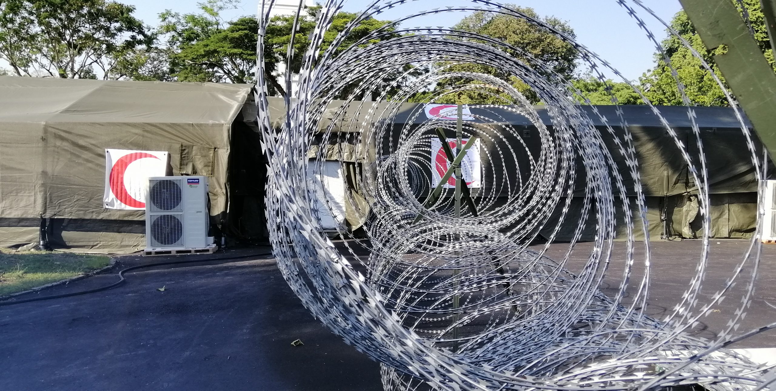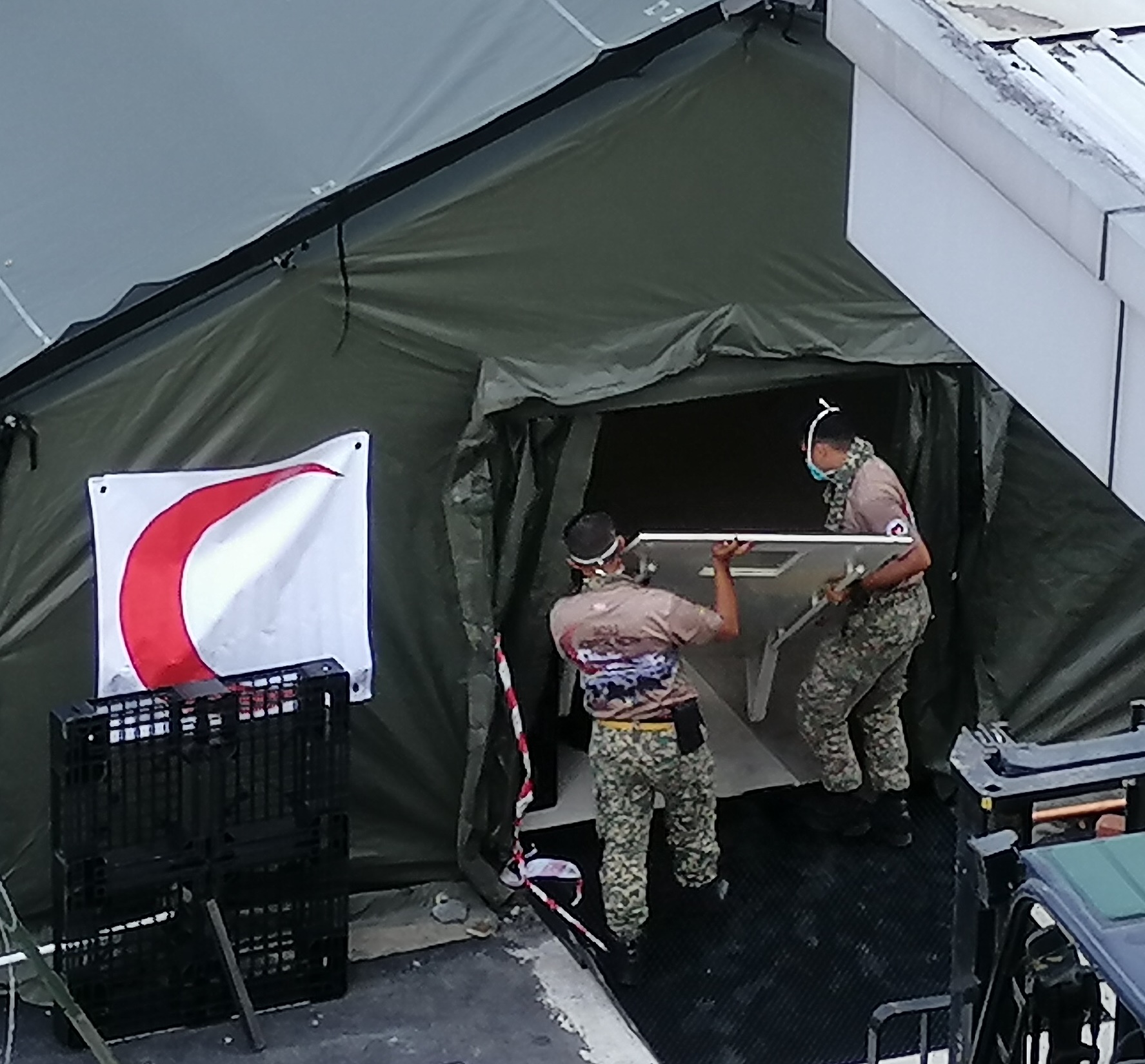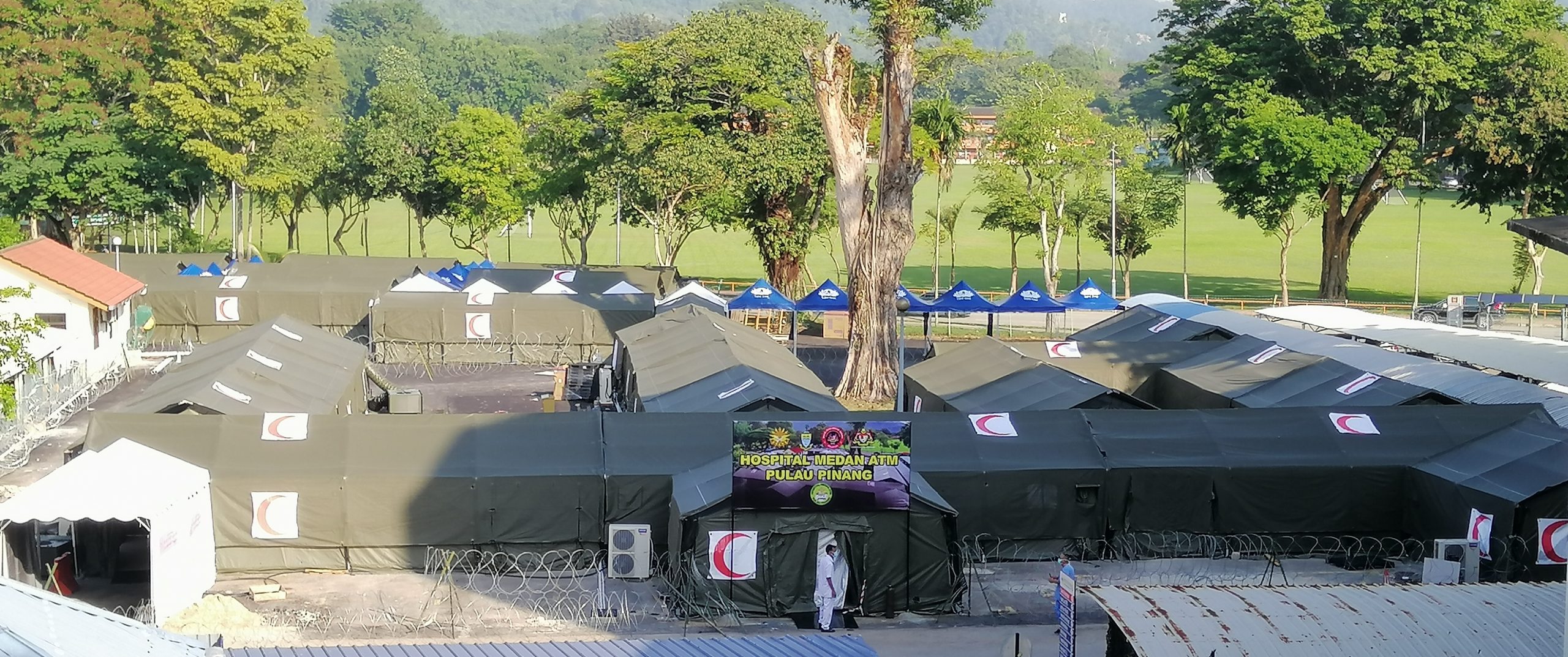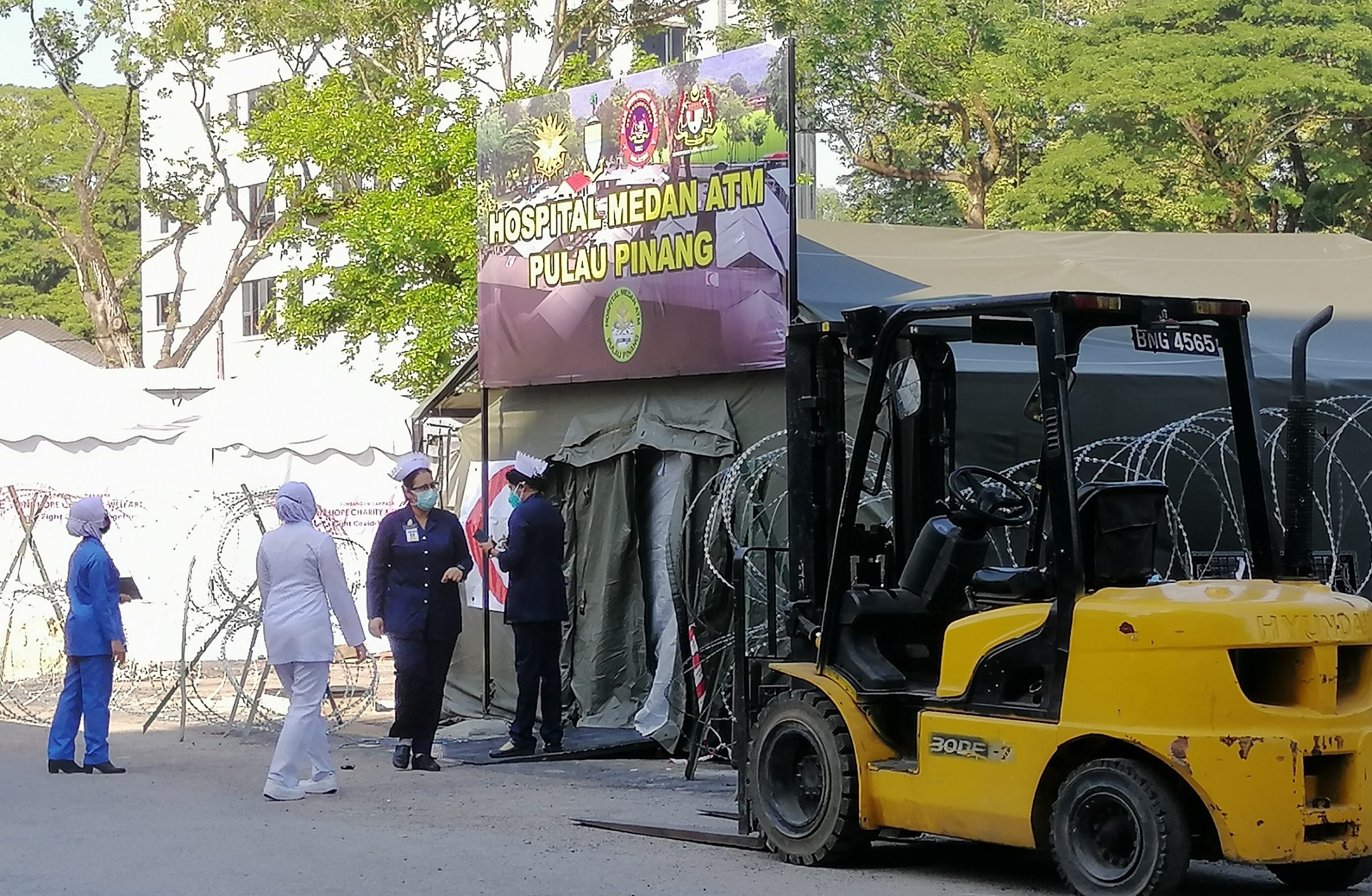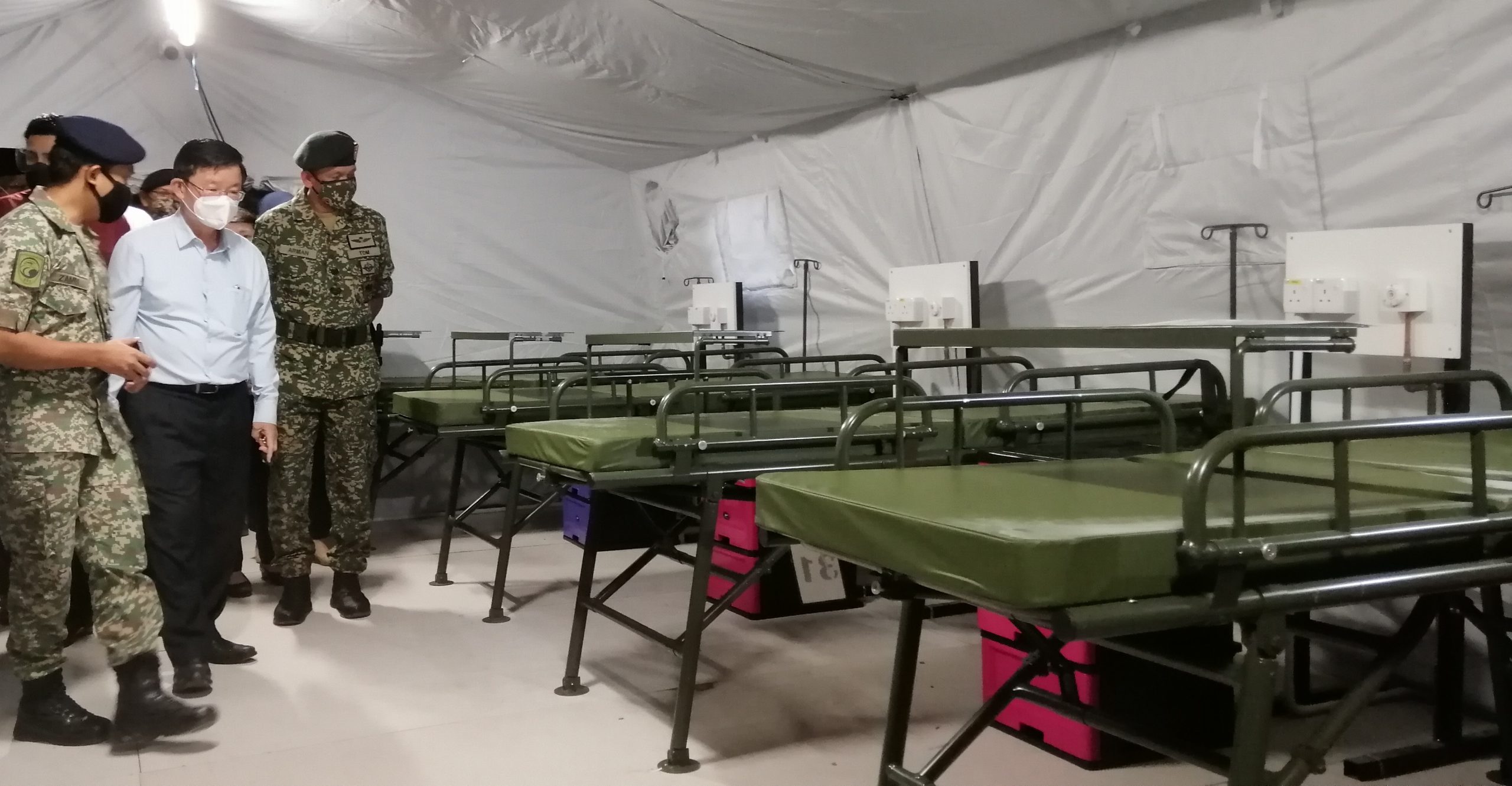 槟州的冠病患者剧增,卫生部长凯里于本月11日到访槟城中央医院,宣布在该院范围设立野战医院,以收治第四和第五阶段的冠病患者。本月16日,国防卫队开始在中央医院停车场处搭建野战医院病房。