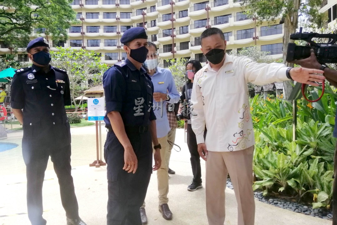询及警方会否委派警员固定驻守酒店时,他说,警方不会这么做,只会展开固定巡逻与检查,同时与酒店协会及其他相关机构开会商讨防疫措施,确保酒店方面实行完善的防疫作业。