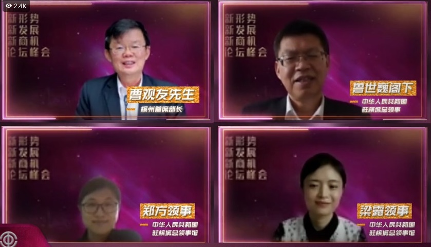 “新形势、新发展和新商机”论坛峰会是由中国驻槟城总领事馆发起,北马中资企业协会和槟州中华总商会联办,今午在Zoom平台进行,也通过槟中总青商团脸书直播。