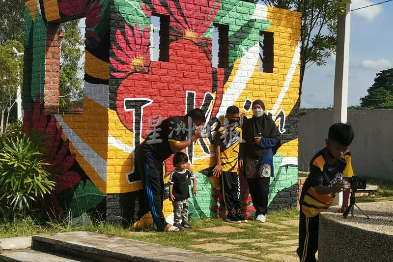 首幅画是以“我爱吉辇”为主题,让外州客进来巴里文打时打卡。第二幅画有华、巫、印女孩各穿著民族服装,象微著吉辇县内各民族的生活和谐一面。