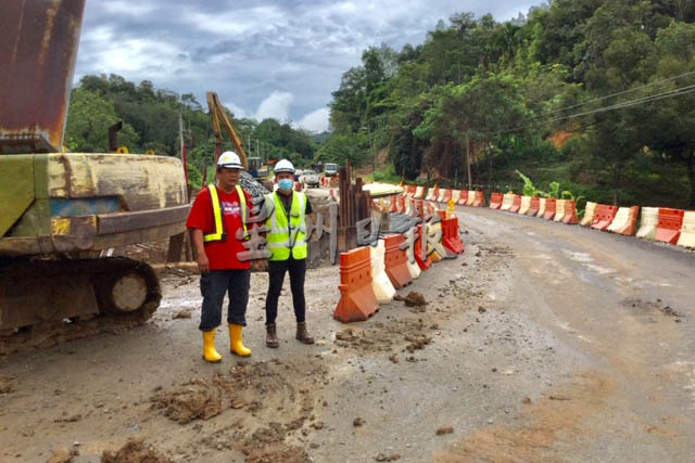 埋在公路底下的暗涵全长67米,离地面约15米,在年前已崩陷,公共工程局3个月前动工修复,由于路面松泥在目前雨季中不断崩塌,对路过车辆,尤其是大型罗里造成危险,为了不影响工程的进度,公共工程局全面封路,以便工程能在预期中完成。
