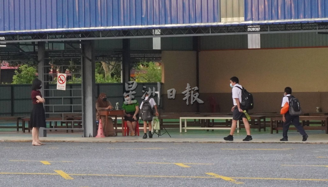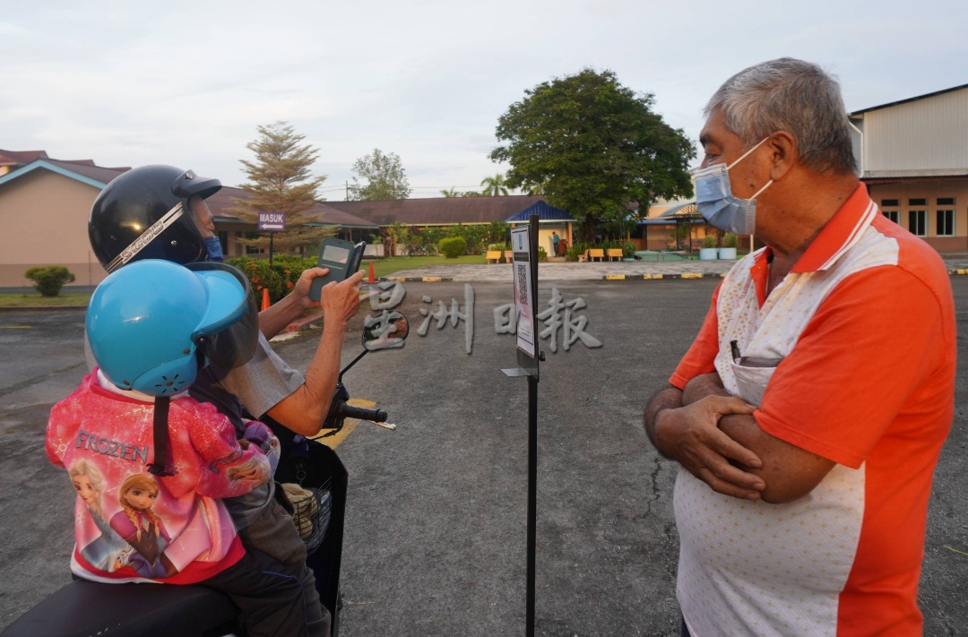 启明华小董事长黄国鸿今早7时即到校巡视,确保学生家长载送子女到校时,出示电子接种疫苗证书,并扫描MySejahtera,才允许他们把车子丶摩托车驶入学校,再让子女下车。