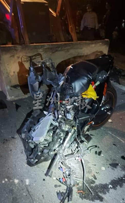 华玲警区主任山苏丁发文告说,警方昨晚9时15分接到甘榜峇鲁发生这起死亡车祸的投报,涉祸的是一辆野马哈(Yamaha)Y15zr型号摩托车及一辆挖土机,两车车头俱损,皆被带返警局调查。
