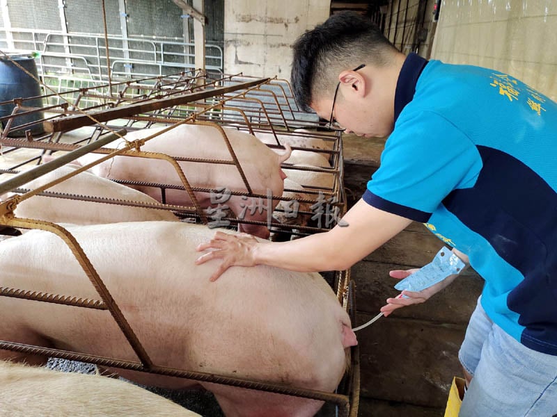 他告诉记者,现代的养猪场老早没有种猪与母猪交配的戏码上演了,而是员工取了种猪的精子,再给发情的母猪做人工受孕。孕猪顺产的话就省却功夫,否则他就得摇身一变成为猪只的“妇产科医生”,为面临难产的母猪接生。