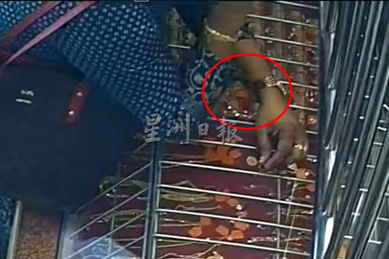 监控画面显示,一名印裔妇女佯装顾客要求试戴金手环,脱下后放在金饰台上,之后要求看另一个手环,至于刚脱下的手环则利用双手臂遮掩,然后两次借口要店员计算另一个手环的价格,及查看其他手环“支开”店员,趁店员不留神,便将手臂下的手环迅速放入手提袋。