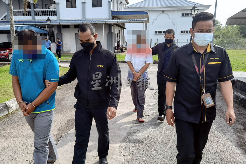 首名嫌犯是已退休的亚罗士打分局前助理经理(61岁),次嫌犯则是已遭革职的35岁邦素山分局经理,2人今早被反贪会官员押到双溪大年法庭申请延扣,获法庭批准延扣7天助查。