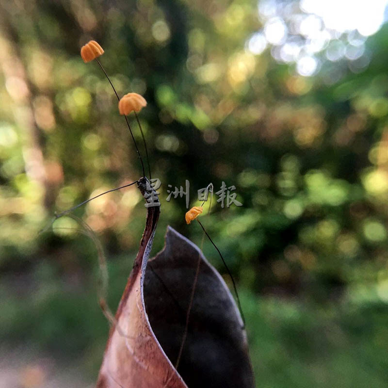 这些山林小伞当中,最吸引着我的是Marasmius。它有一种独特美,滋生在枯叶上,一把把的小伞站立在枯叶上,而且,它的干是非常纤细的,若不仔细观察,随时就错过了。