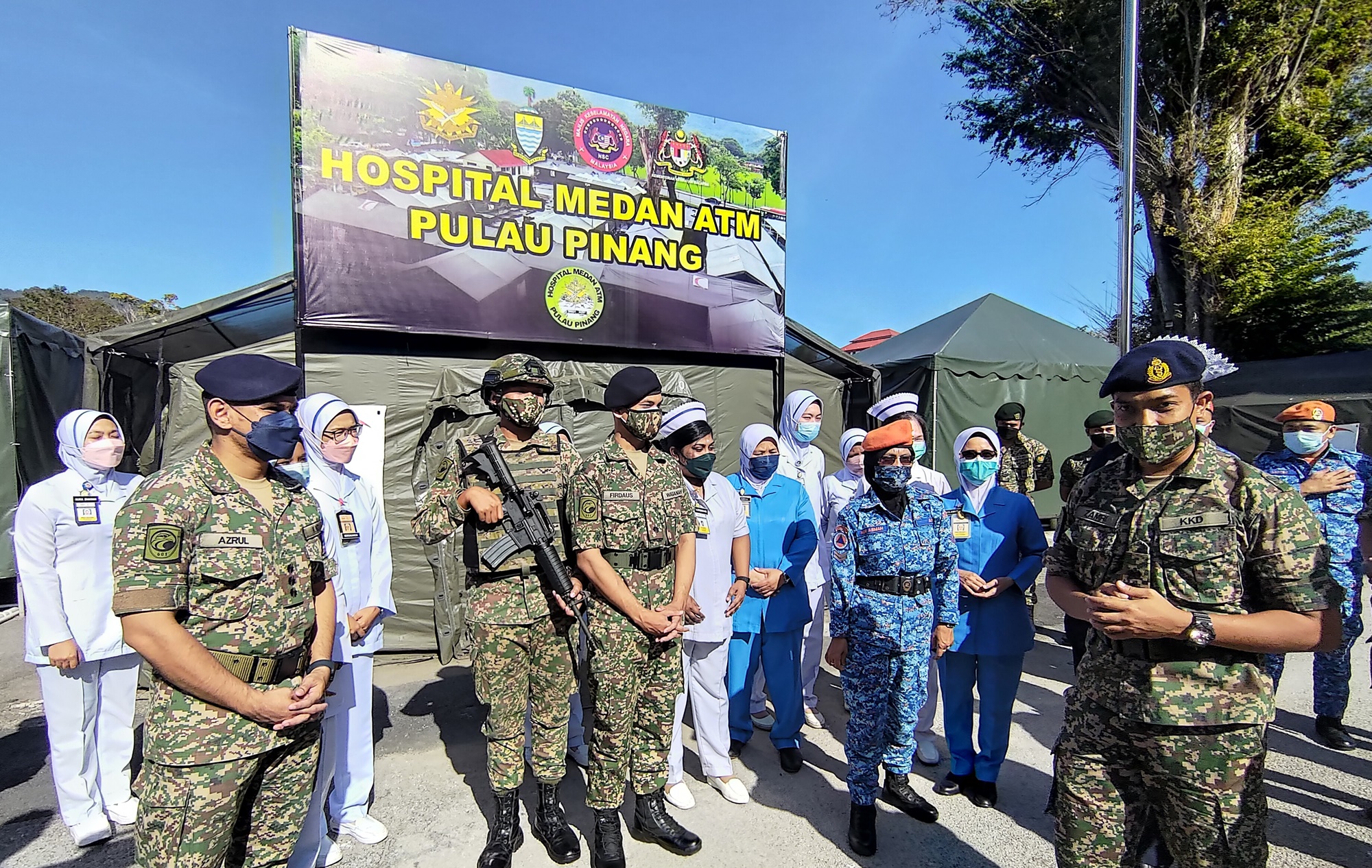大马陆军第二师指挥官拿督莫哈末胡再米少将今早到槟城中央医院,同步为该院和甲抛峇底医院的两间野战医院主持结束运作仪式。