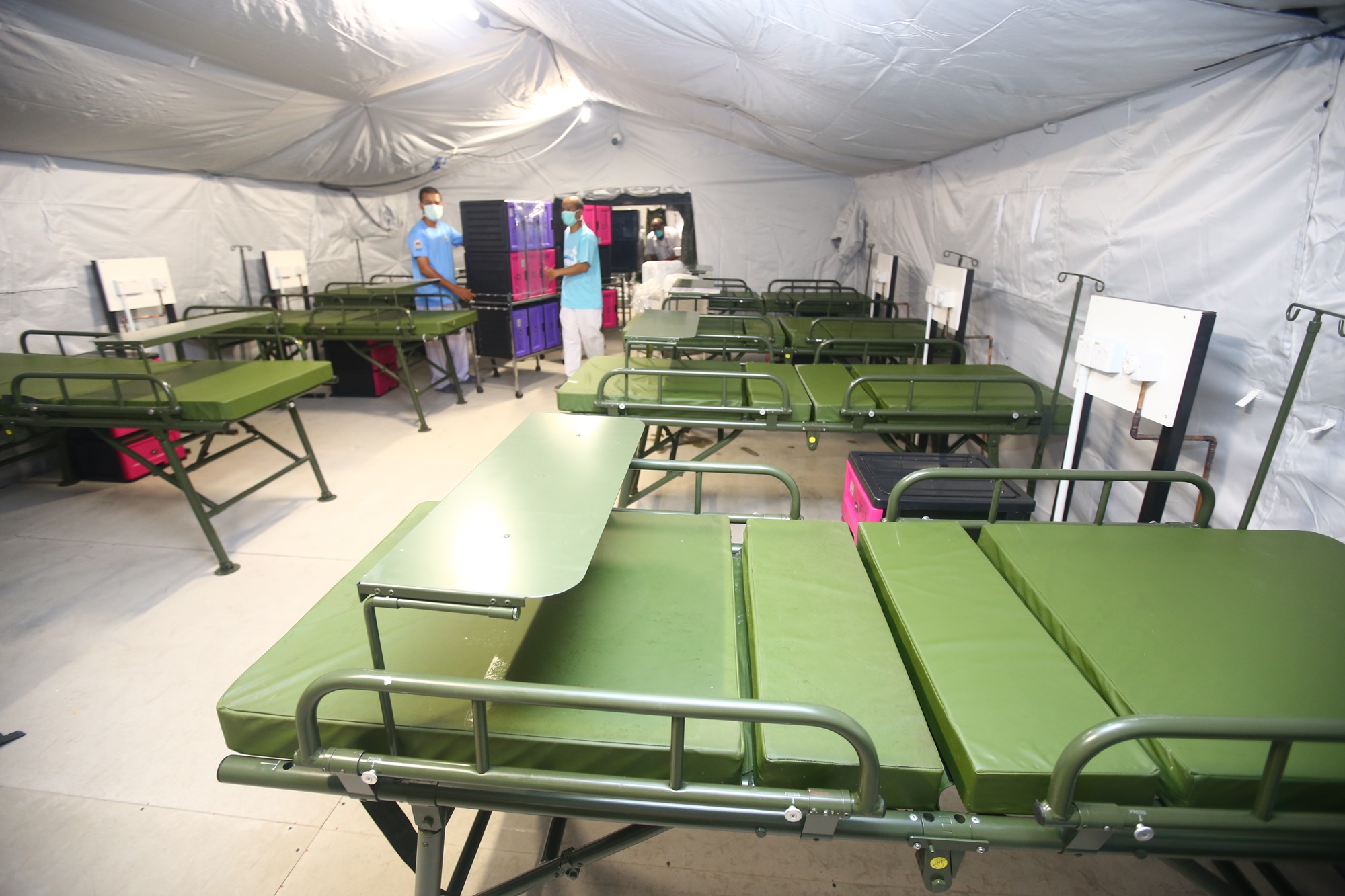 在冠病疫情严峻期间,国内各中央医院病床的使用率曾超过90%,因此国防卫队协助卫生部设立野战医院分担医疗工作,主要收容冠病第三及第四阶段的重症病人。