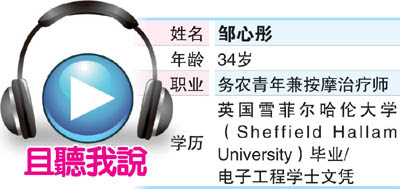 一开始卖有机菜,后来转向研制草药产品,现在则比较专注在按摩事业。