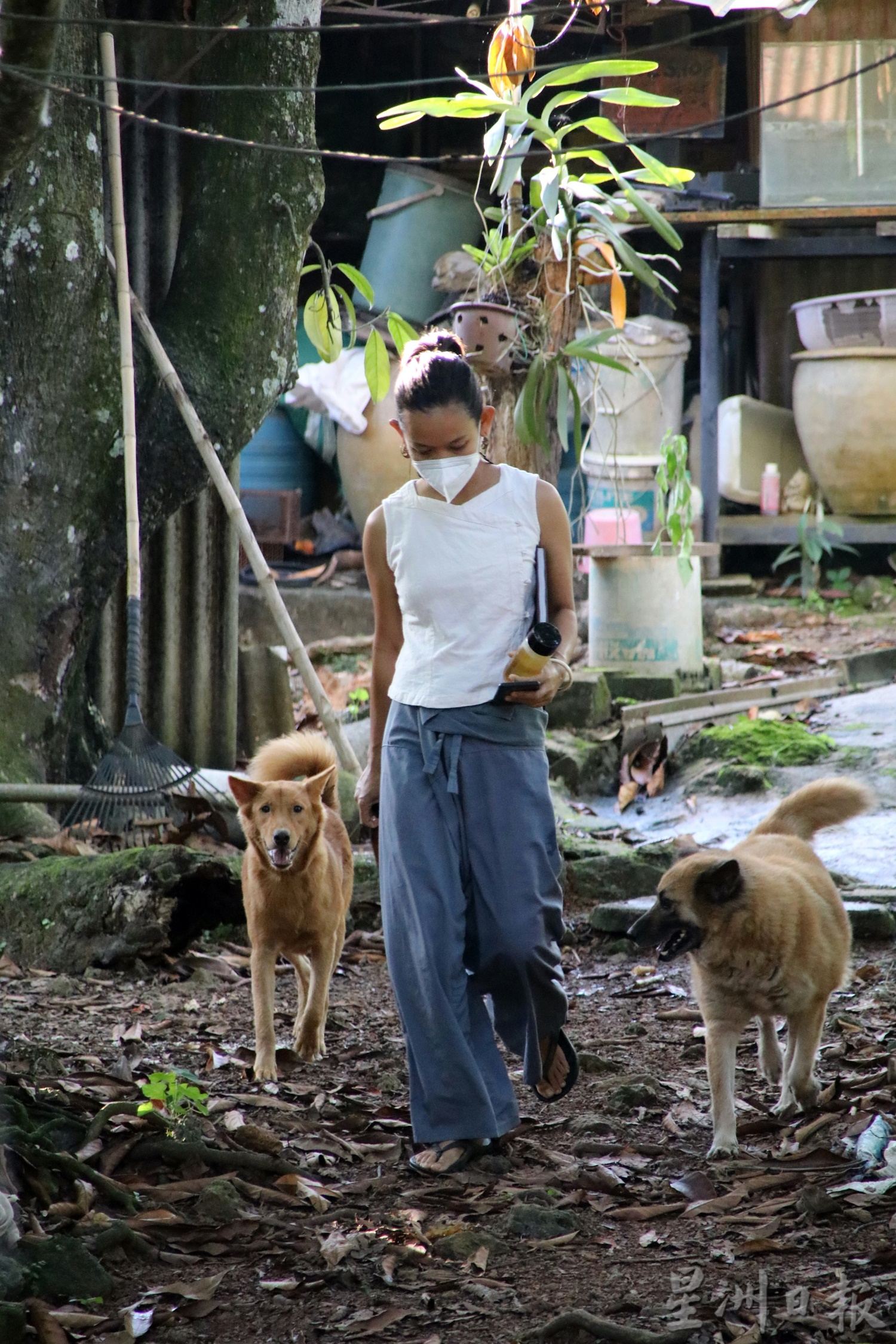 (采访当天,我们边走边谈。当时,名为Lucky的狗狗一直紧随其后)