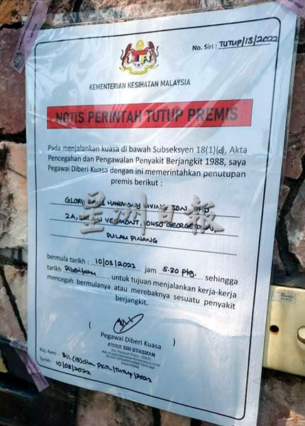 (槟城12日讯)弗蒙特路(Jalan Vermount)一家看护中心28名员工及住户陆续确诊冠病,槟州卫生局己指示暂时关闭中心。