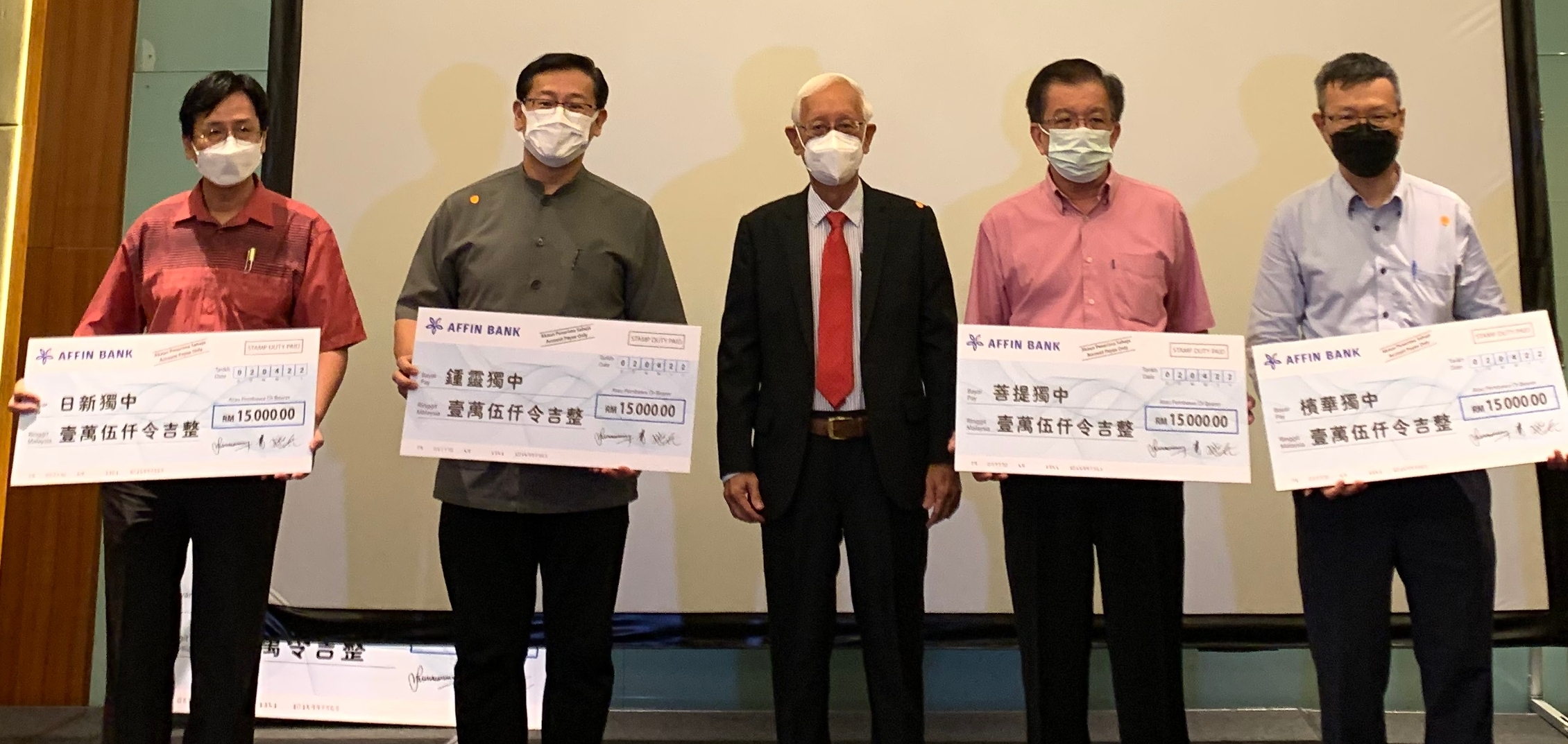 他说,槟州4所独立中学钟灵独中、槟华独中、菩提独中、日新独中,也获得拨款1万5000令吉。