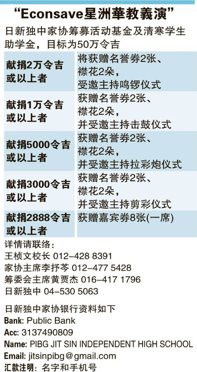 Econsave星洲华教义演 | “疫不容辞,同心护航”义演5月21日开唱 日新独中家协离目标尚欠34万