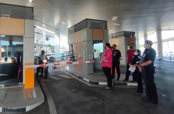 玻璃市边境合作与联系事务委员会罗再尼今早到巴东勿刹关卡巡视,向玻州移民局长凯鲁阿敏、巴东勿刹关卡主任哈林、卫生局官员再妮仄侬了解出入境情况。