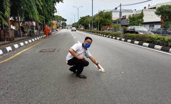 (北海4日讯)马华峇眼区会宣传主任林囸锋质问槟州政府和双溪浮油州议员彭文宝,槟州公共工程局在北海阿波罗巴刹前路段,装置反光铸铝道钉用意何在,背后是否有隐议程?