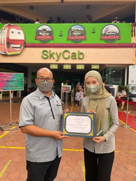 这名拾金不昧的女职员诺哈菲查(27岁),是东方村缆车服务柜台任宣传组的职员。她是于今年5月31日工作时,发现一名来自苏丹的男游客提着手包,与妻子和3名孩子到柜台购买入门票后,就坐在等候处座位。