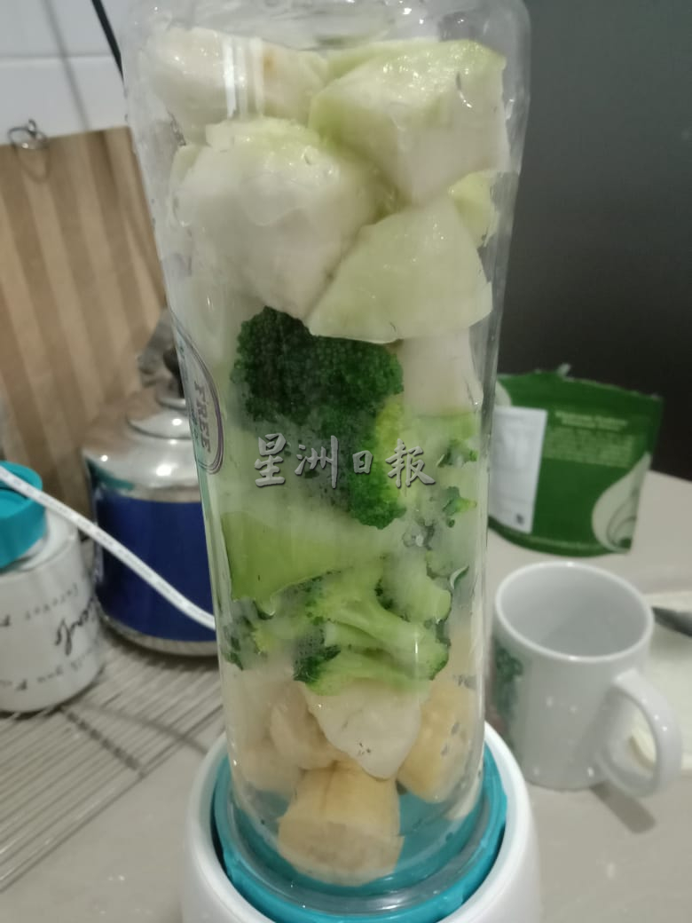 后来,她因为肚子有点不舒服,便上网更详细地找资料,发现其实一些青菜如果生吃会导致腹胀,严重则会中毒,于是她都会汆烫过蔬菜类才加入水果搅成汁食用。