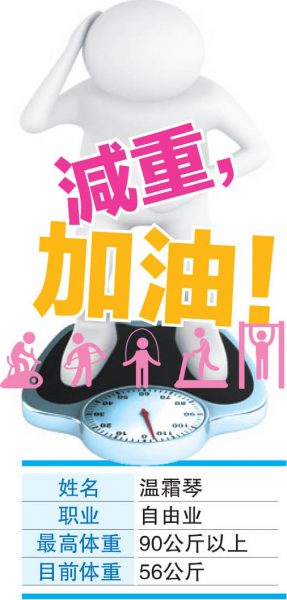 这五年来,体重曾破90公斤的温霜琴减掉了34公斤。