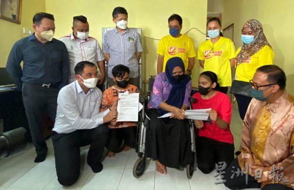 孙意志今日联同槟州县教育局策划与管理组首席助理局长拿督祖基菲前往两姐妹的住家,将教育局批准返校录取通知书,亲自交给两人的母亲罗斯丽查(54岁),让这位因糖尿病被迫截肢的单身妈妈,激动得数次流下开心的眼泪。