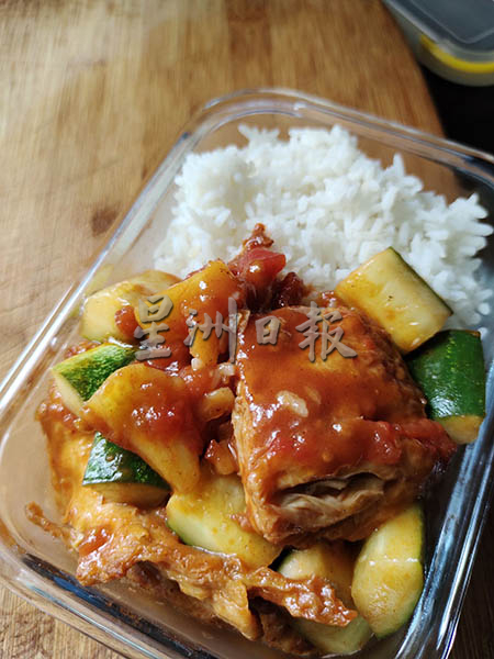 荤菜素煮的咕噜豆包酸甜惹味,一不小心就是添米饭。